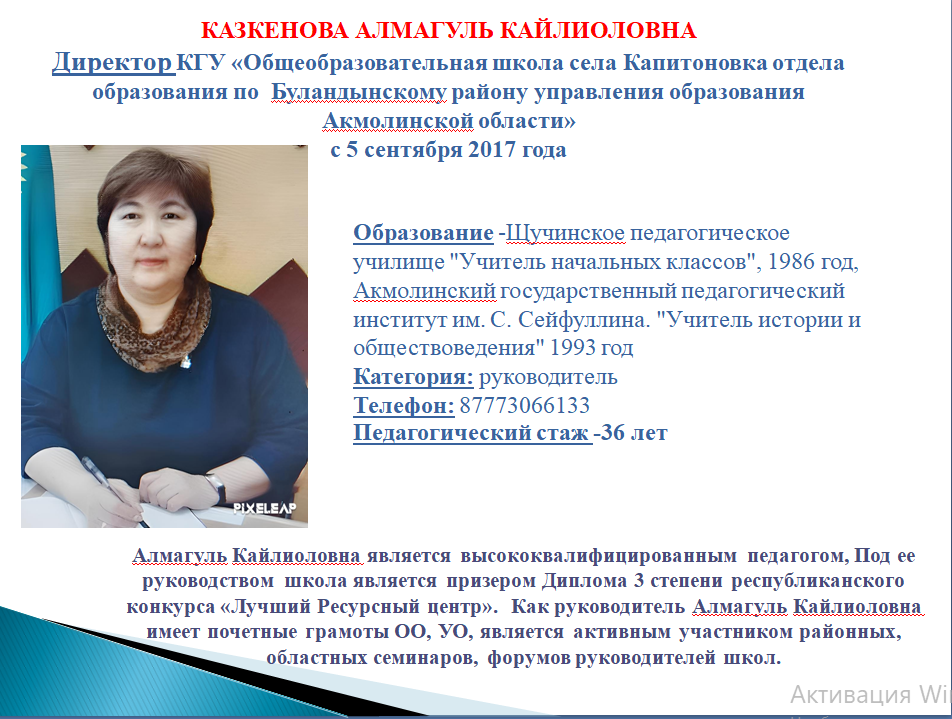 Коммунальное государственное учреждение «Общеобразовательная школа села Капитоновка отдела образования по  Буландынскому району управления образования Акмолинской области»