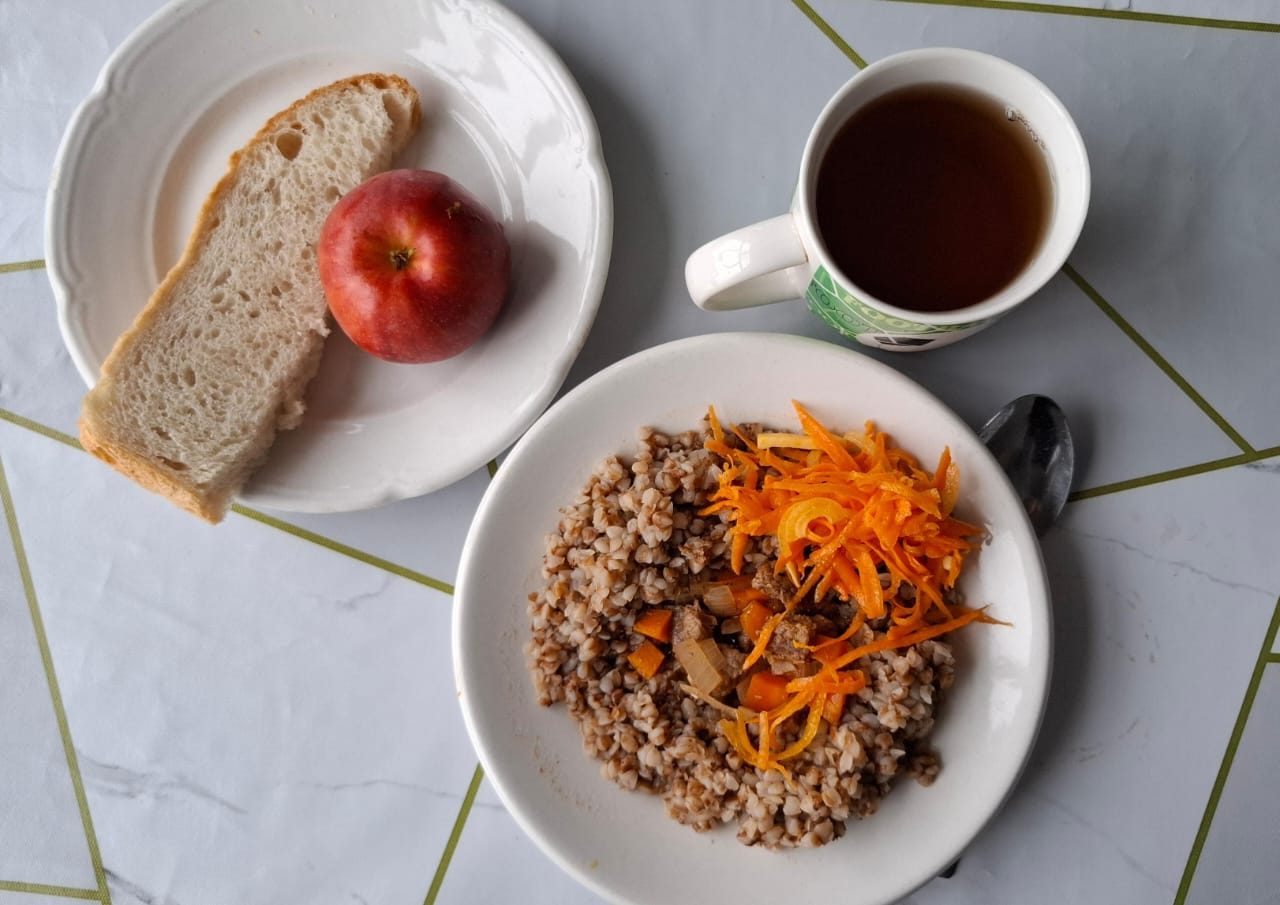 Жасыл көкөністер мен құс еті қосылған қарақұмық ботқасы