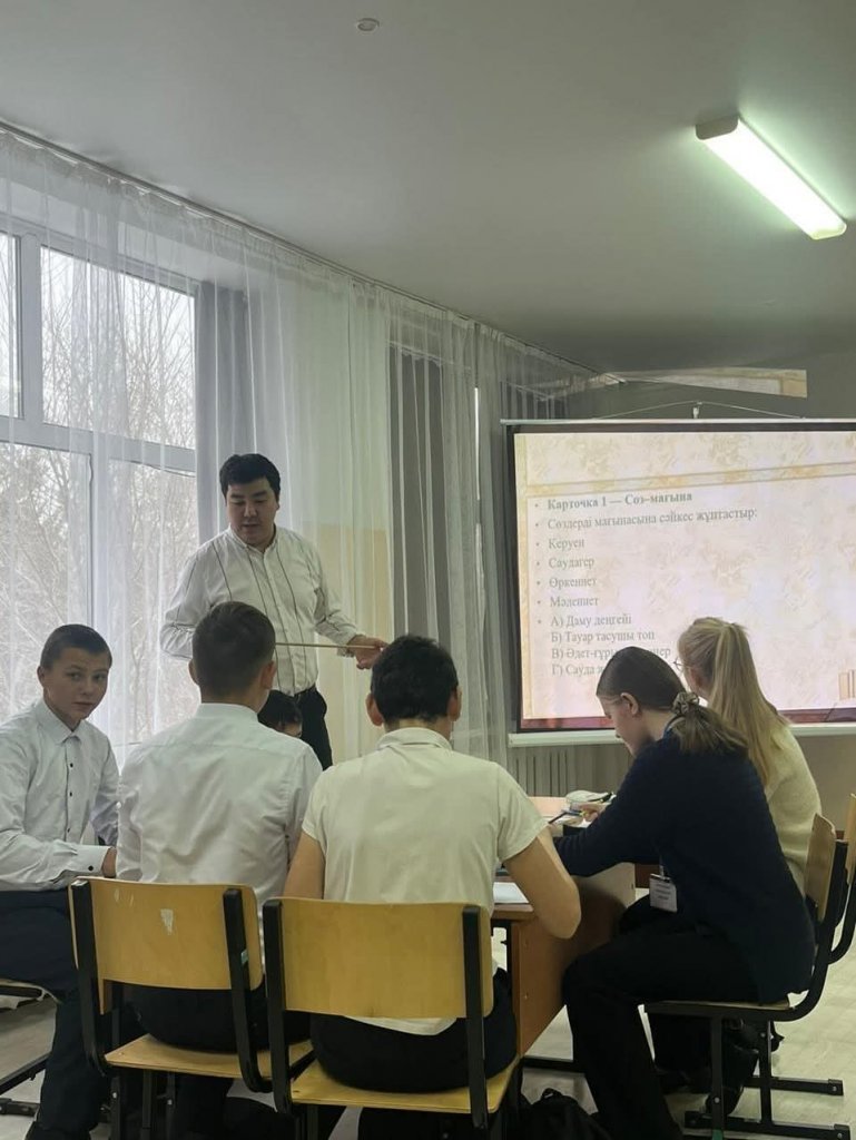 Қазақ тілі онкүндігі аясында 8» Б « сыныбында оқушылардың тіл мәдениеті мен мәдениетаралық құзыреттілігін дамытуға арналған жарқын және танымдық ашық сабақ өтті. Балалар өз білімдерін, шығармашылық тәсілдерін және алған дағдыларын практикалық тапсырмаларда қолдана...